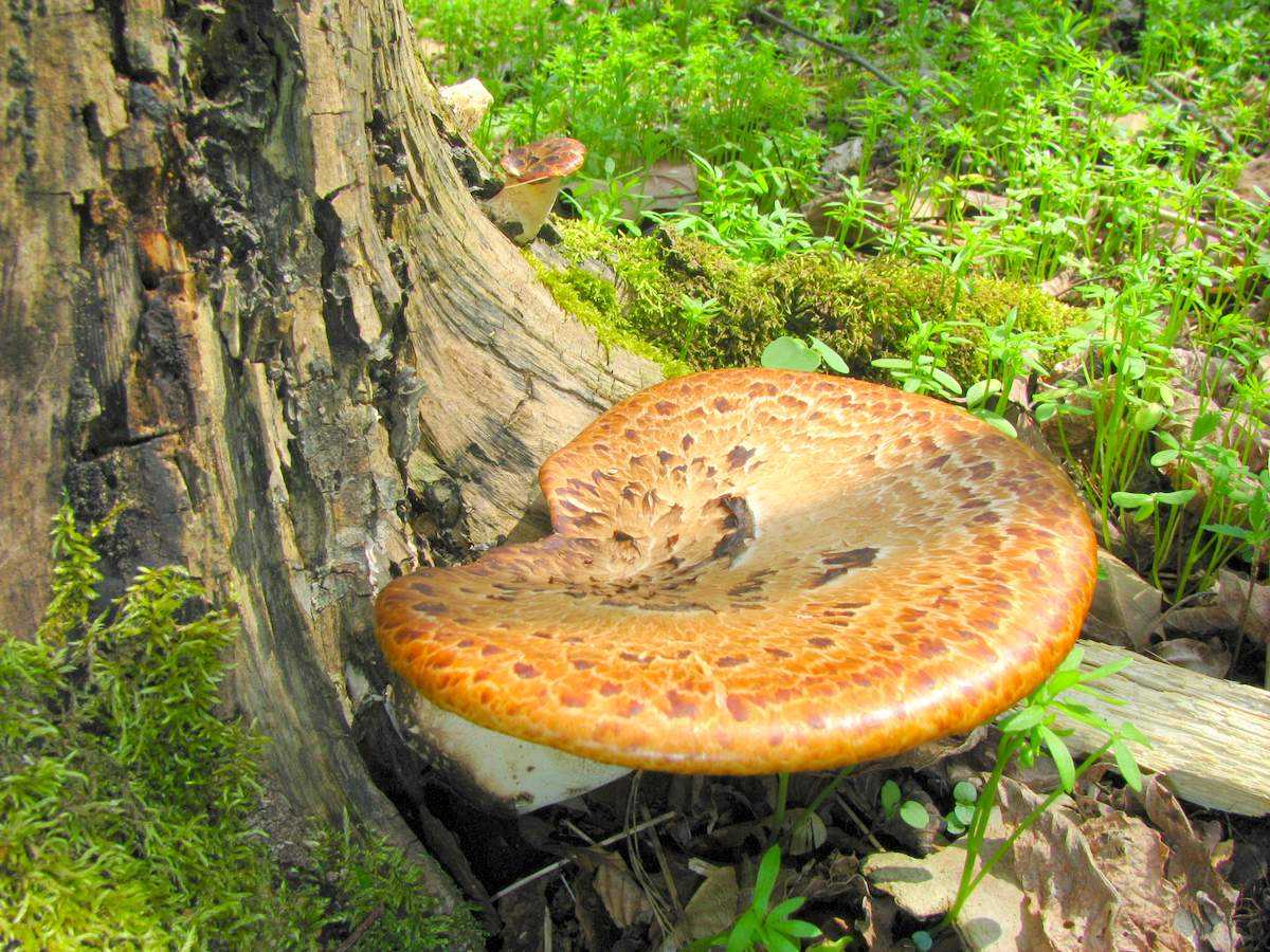 Наконец, самый «кулинарный» и распространенный род трутовиков — Polyporus. Как правило, это грибы, похожие на «шляпочные», с трубчатым гименофором; их съедобность обратно пропорциональна степени жесткости плодового тела. Например, «пестрец», трутовик чешуйчатый, появляющийся в начале лета, относительно мягок и от того съедобен. Еще мягче и съедобнее мелкий Трутовик клубненосный, отличающийся широкими порами. А вот трутовик майский — уже в каком-то смысле переходная форма между пищевыми и техническими трутовиками. Я, когда набираю его немножко, крошу в суп — для запаха. Пахнет он хорошо.