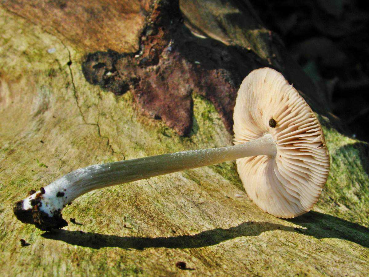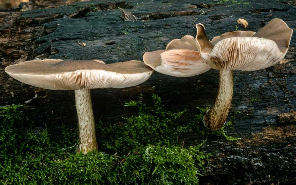 - Грязноножковый – редкостный, несъедобный экземпляр. Произрастает на гниющей лиственной древесине. Характерные признаки вида: поверхность с радиальными штрихами и светло-розовыми пластинами. Мякоть плотная, белая, горький на вкус, без выраженного грибного запаха.