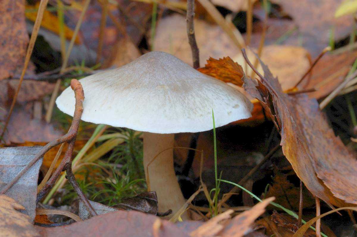 - Белая рядовка отличается снежно-белым, иногда желтоватым окрасом. Шляпа распростертая, бархатистая. Ножка цилиндрическая, немного изогнута. Ее поверхность повторяет окрас шляпки. Узнать гриб можно по мякоти. Ей свойственно менять свой цвет при контакте с воздухом, поэтому на изломе она моментально розовеет. От мякоти исходит резкий неприятный запах редиса.