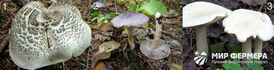 Рисунок 4. Съедобные виды: 1 — землистая, 2 — лиловоногая, 3 — серая