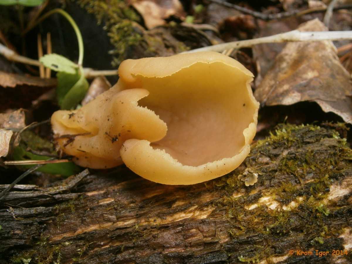 Пецица оранжевая – условно-съедобный гриб. Диаметр его плодового тела может доходит до 10 сантиметров. Форма его меняется от шарообразной до блюдцевидной. Края у гриба волнистые. Окрас ярко-оранжевый, снаружи более светлый. Мякоть тонкая оранжевого цвета без запаха и без вкуса.