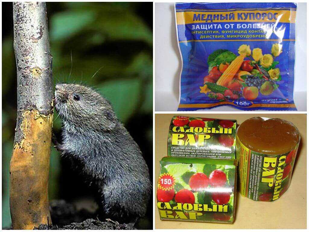 - ранней весной, пораженное место мышами, тщательно шлифуют и дезинфицируют любым средством для культурных растений;