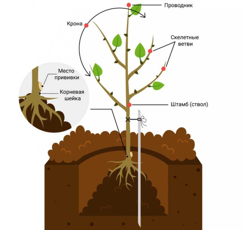 - Укоренить саженец так, чтобы его корневая шейка была на 5–6 см над уровнем земли.
