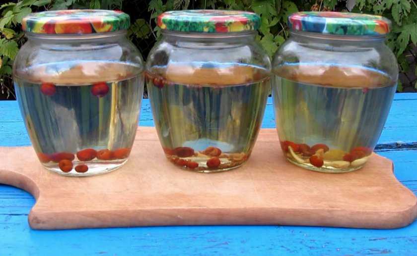 - 3. Спустя положенное время процедить жидкость через марлю и настаивать ее еще двое суток, затем снова процедить. Спиртное должно быть немутным.