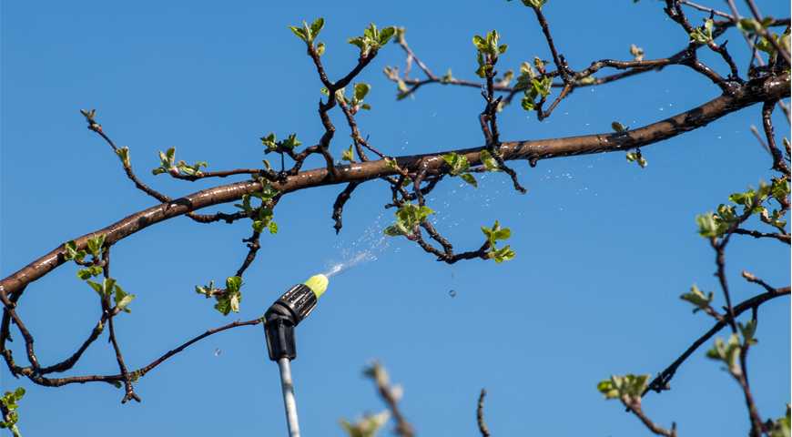 Первую обработку делают, как только температура днем достигнет +4° С. Чтобы проверить, проснулись ли уже вредители, нужно подостлать под дерево белое агроволокно или другую ткань, постучать по ветвям палкой. Вышедшая с зимовки черная листоблошка хорошо будет видна на светлом материале.