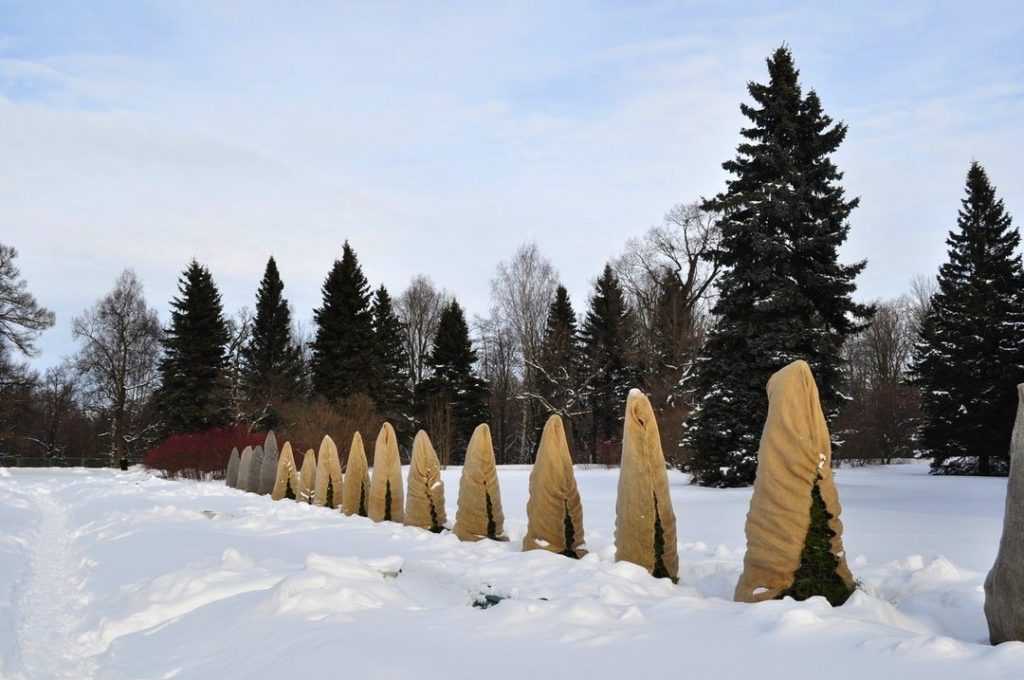 На зиму крону дерева желательно укутать мешковиной или любым другим дышащим материалом. Слой мульчи под деревом желательно увеличить до 10 см. Если зима снежная, то крону растения необходимо регулярно стряхивать.