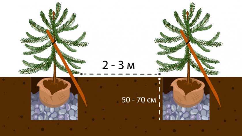 Процесс одиночной высадки саженцев сербской ели выглядит следующим образом: