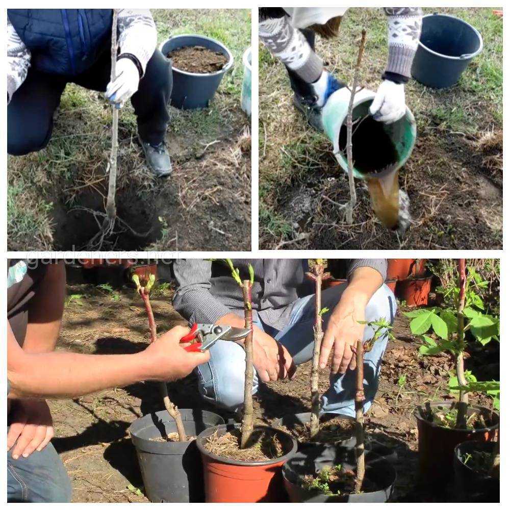 Осенью небольшой остроконечной лопаткой захватывают саженец вместе с комом земли и высаживают на постоянное место жительства. В течение лета на деревце находится два листа, только к концу августа замечают вторую закладку листьев.