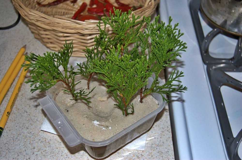 В последнем случае нужно знать, как посадить тую из веточки без корней.