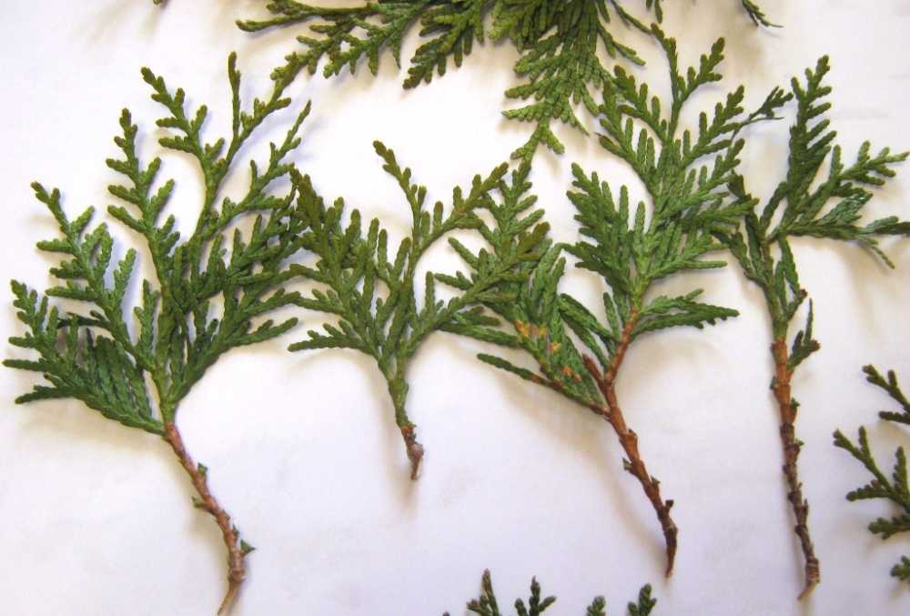 Веточки от туи можно брать лишь в самом разгаре листопада остальных лиственных деревьев, этот период проходит примерно в середине октября.