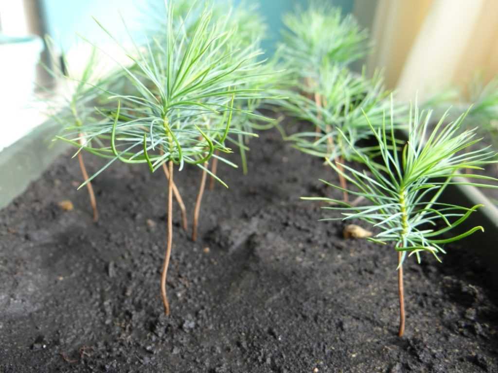 Заливать всходы нельзя, рассада сосны подвержена поражению черной ножкой.