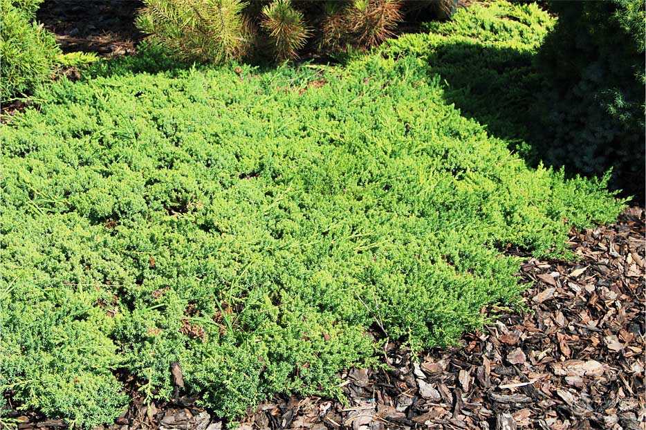 При желании можжевельник Нана можно присыпать мульчирующим слоем. В качестве мульчи используют древесные опилки, торф, сухую траву и листья, а также щепки.