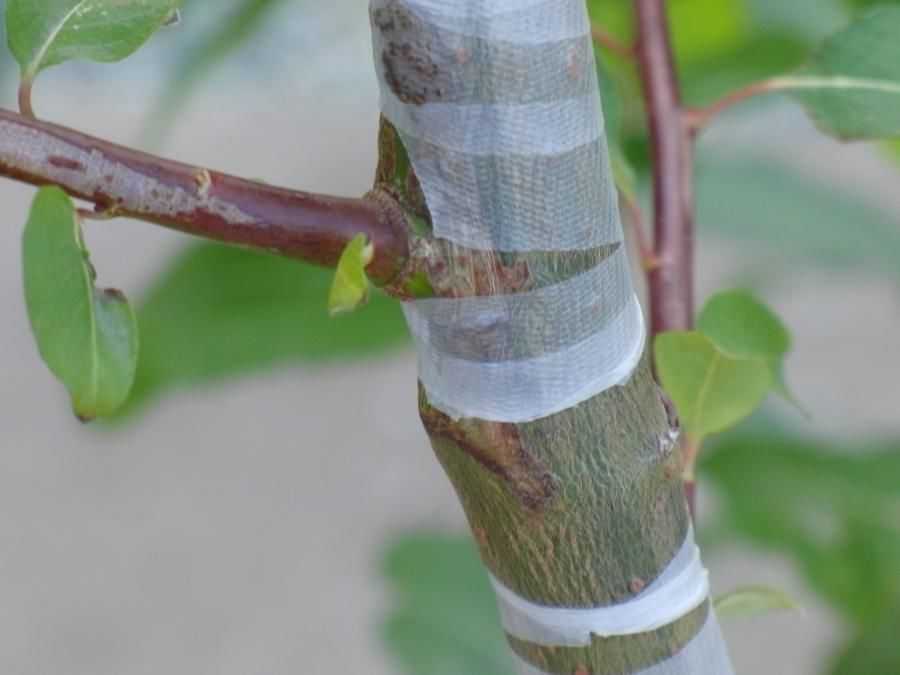 Допускается использование изолирующей ленты, применяемой электриками при изоляции проводов. Скотч для обматывания прививки не подходит. Лучшим материалом обмотки считается тканевая х/б полоса, пропитанная садовым варом. Ее используют для первичной внутренней обвязки, а сверху наматывают слои из бинтов.