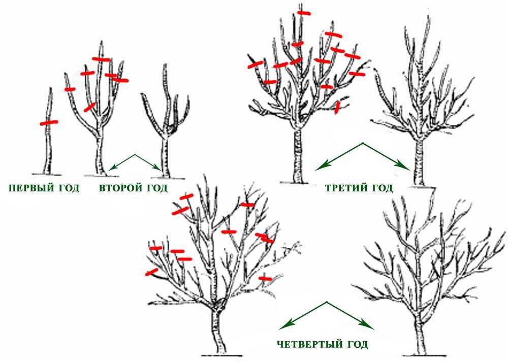Схема формирования разреженно-ярусной кроны сливы