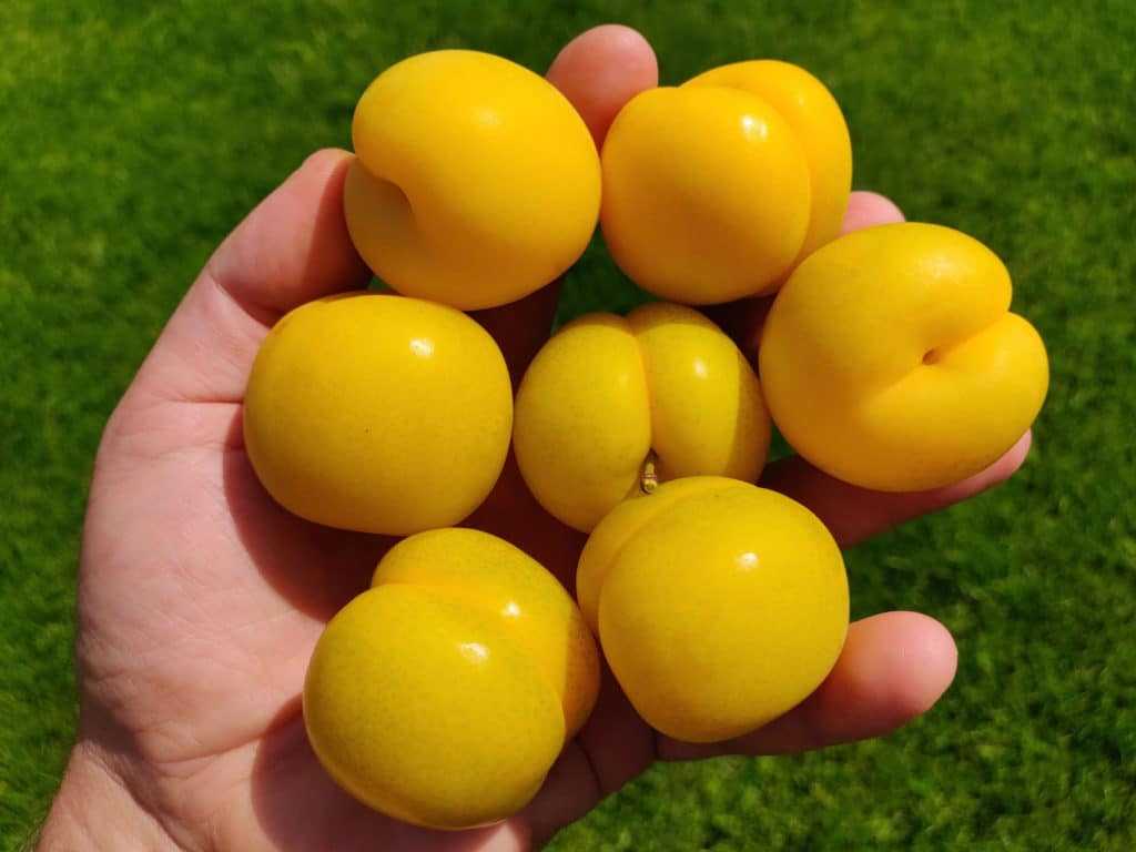 Пользуется популярностью сорт Крупная Золотистая. У деревьев высотой 4-5 м формируется пирамидальная крона. Сладкие плоды вызревают весом 40-60 г. Нежная мякоть желтого цвета обладает кисло-сладким вкусом. Минус сорта – косточку сложно отделить от мякоти.