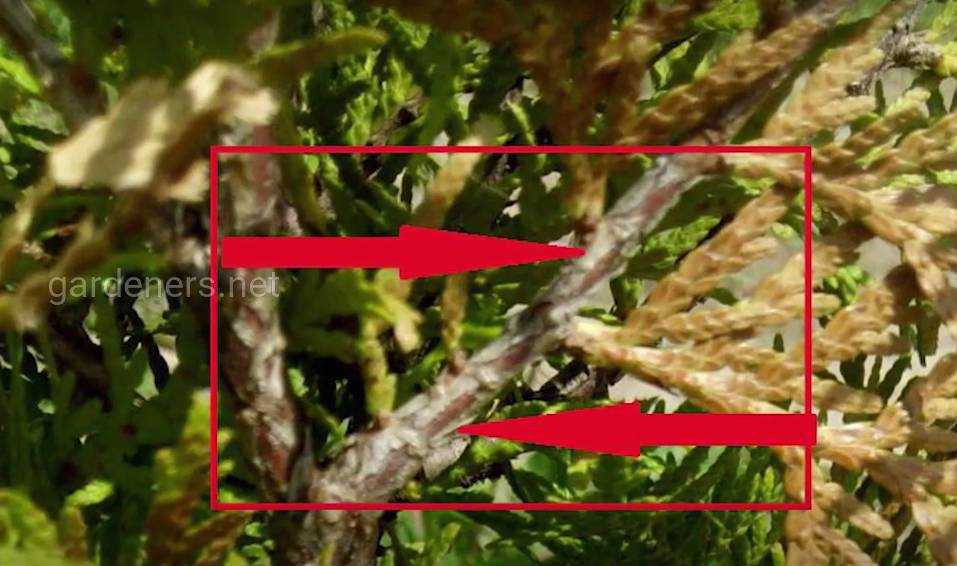 Важно!Изменение окраски хвои также может произойти, если ваше домашнее животное выбрало тую в качестве своего постоянного туалета. В таком случае нужно как можно скорее отучить его от этого или построить ограждение, через которое питомец не проберётся