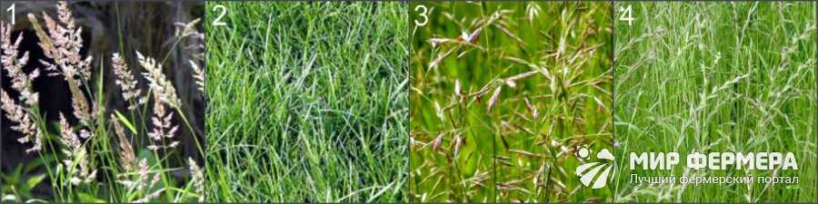 Рисунок 4. Виды газонных трав: 1 — мятлик луговой, 2 — полевица побегоносная, 3 — овсяница красная, 4 — райграс