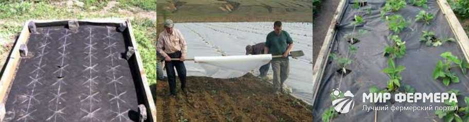 - порядок подготовки материала может быть и несколько иным: после того, как земля будет покрыта укрывным материалом, в нем выполняют отверстия, в которые затем высаживают непосредственно рассаду или же сеют семена.