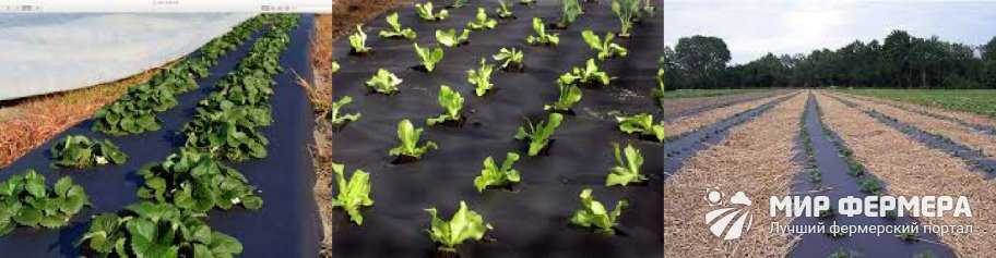 Известная российская торговая марка предлагает несколько видов популярного сырья. Желтый вариант используют для уничтожения насекомых на пасленовых культурах. Применение черного геотекстиля от сорняков облегчает уход за клубникой: в течение сезона высокая температура не обжигает ягоды, а грунтовая грязь после полива не пачкает урожай.