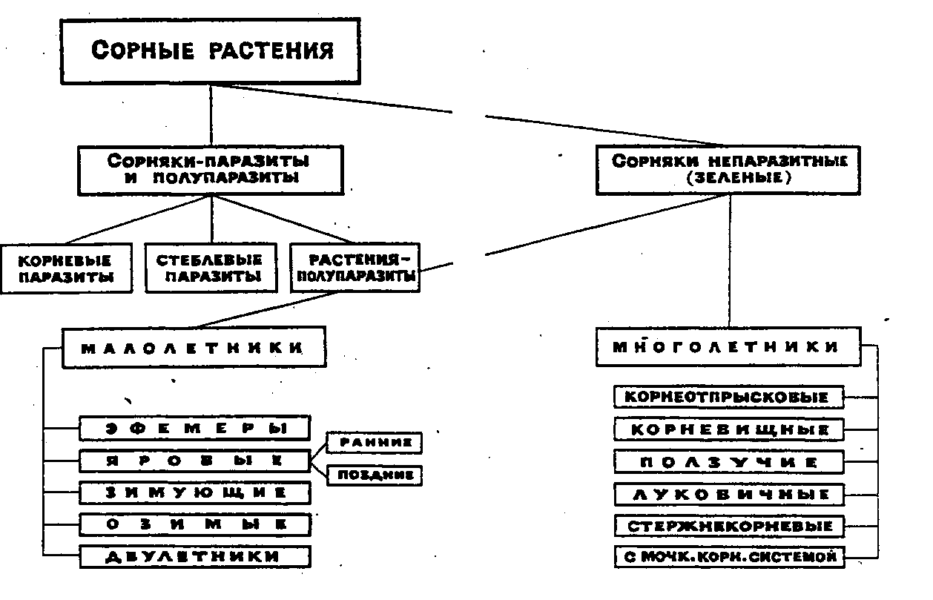 Все сорняковые растения делят классифицируют по следующим признакам: